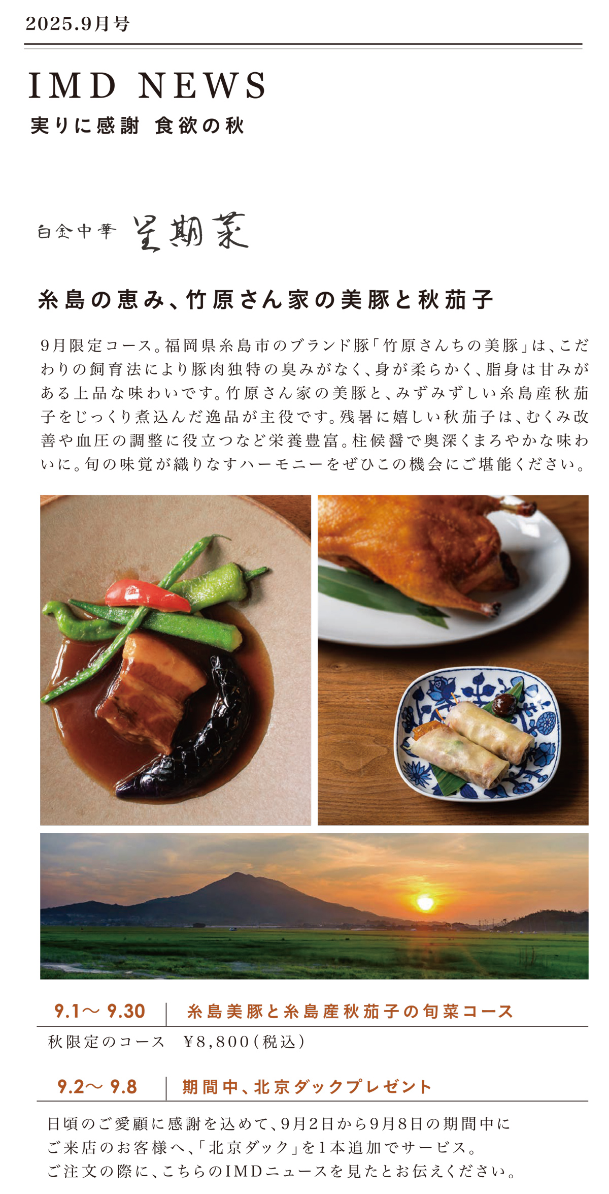 平素より白金中華 星期菜をご愛顧いただき、誠にありがとうございます。